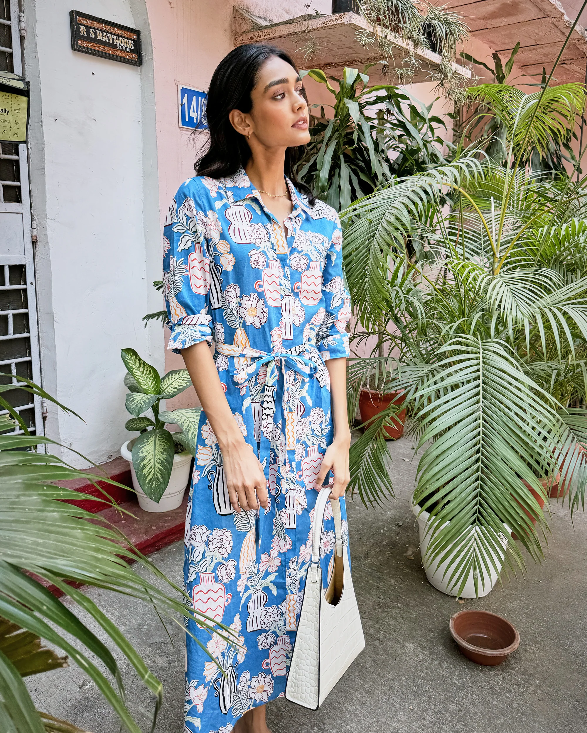 The Pattern: Antique Vases is a romantic nod to the ornate details found in Indian havelis, reimagined in soft, wearable styles. Delicate floral vase motifs bring a whimsical charm to each piece, capturing the joy and wonder of travel. Crafted in breathable organic cotton cambric, this collection is made for dreamy days and faraway adventures.