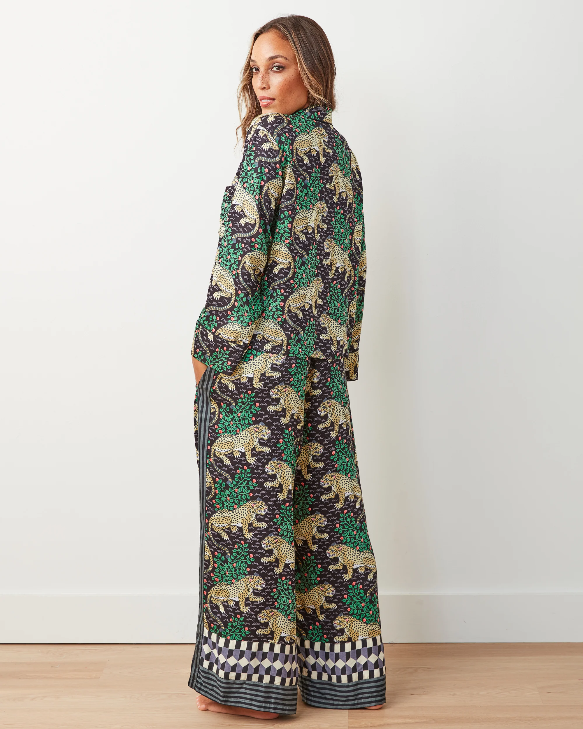 - The Pattern: Vintage textiles, antique paintings of large jungle cats and decorative flora were brought together to create this fan-favorite leopard print robe. Poised as she is fearsome, Bagheera (in her luxe Ink shade) knows when to quietly sit beside an asoka bush and when to strike.