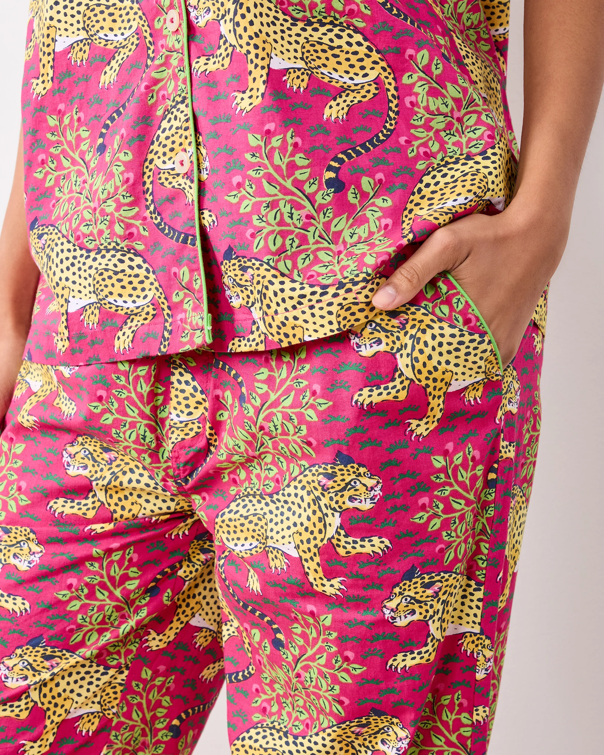Bagheera - Short Sleeve Top & Long Pants Set - Hot Pink